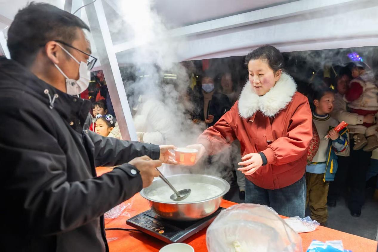 同步开展的趣味猜灯谜环节,数百条涵盖民俗常识、成语典故的灯谜悬挂于红灯笼下,业主们驻足思索、相互探讨,在益智互动中体悟传统文化乐趣,答对者可获得精美小礼品,现场气氛热烈有序。特色小吃品鉴区精心准备了汤圆、麻辣烫等风味美食,香气四溢,让业主们在味蕾享受中感受节日的团圆暖意,邻里间互道祝福、共话家常,欢声笑语弥漫在社区各个角落。