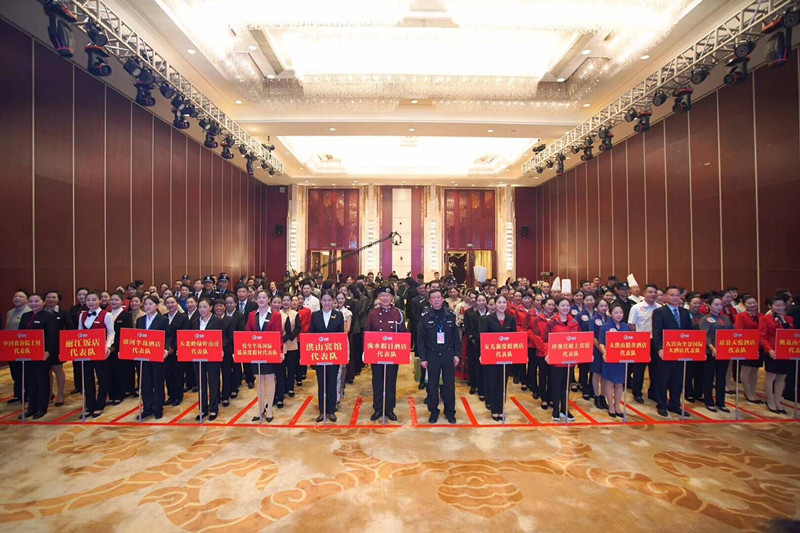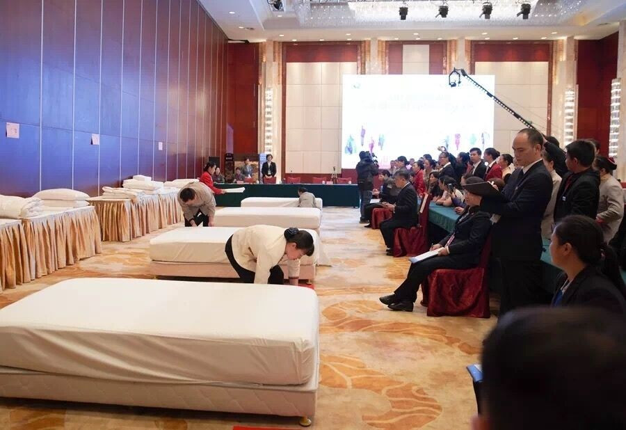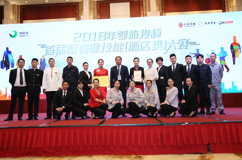 11月8日,“2018鄂旅投杯首届服务业技能(酒店类)大赛”在武汉洪山宾馆举行,来自鄂旅投集团旗下16家酒店的144名选手参与角逐。恩施大峡谷女儿寨度假酒店选派19名员工组成代表队通过工装礼仪、宴会主题设计、中餐摆台和中式烹饪等将恩施土苗民俗文化充分展现,荣获佳绩,在中式铺床和车辆指引比赛中也赛出了水平,赛出了风采。