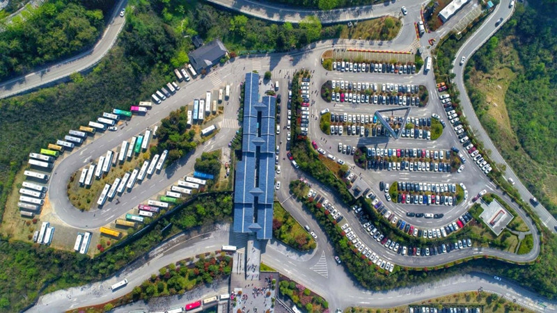图:清明小长假第二天,恩施大峡谷停车场航拍
