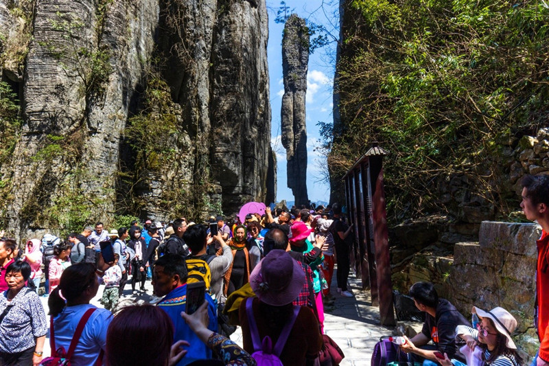 图:恩施大峡谷“一炷香”景点处观景人群