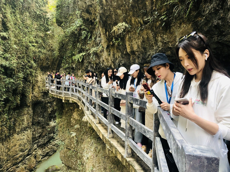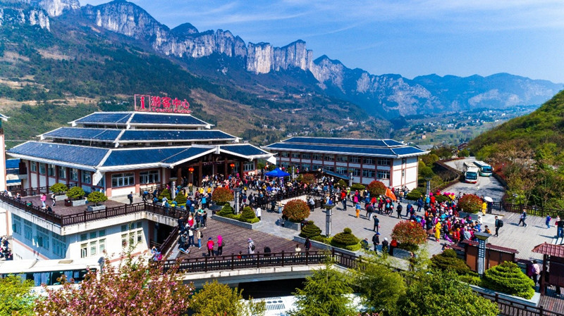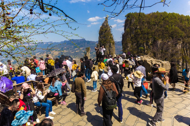 春光无限醉游人。无限春光及清明假期高速小车免费的利好助推自驾自助游客的出游热情,清明小长假期间,景区迎来占比近80%自驾游大军。小长假第二天,停满自驾游车辆的生态停车场成为一种独特风景。幽深地缝,绝壁峰丛,游客徜徉其间,俯首抬足间,尽是春天百媚生,春光无限,人在画中游。