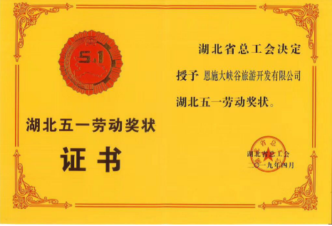 4月24日上午,2019年湖北省庆祝“五一”国际劳动节暨表彰大会在武汉洪山礼堂举行,恩施大峡谷旅游开发有限公司荣获湖北五一劳动奖状。