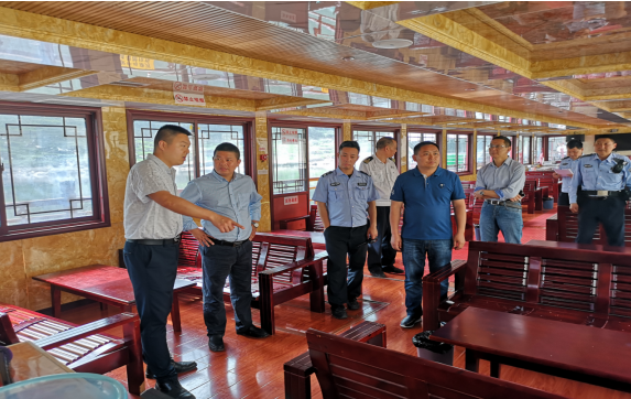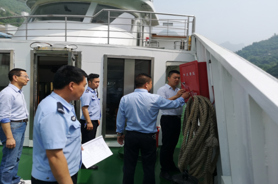 在游船上,检查组详细了解每艘游船的运行,查看安全生产工作记录及安全设施、消防器材的配备等情况。
