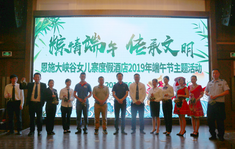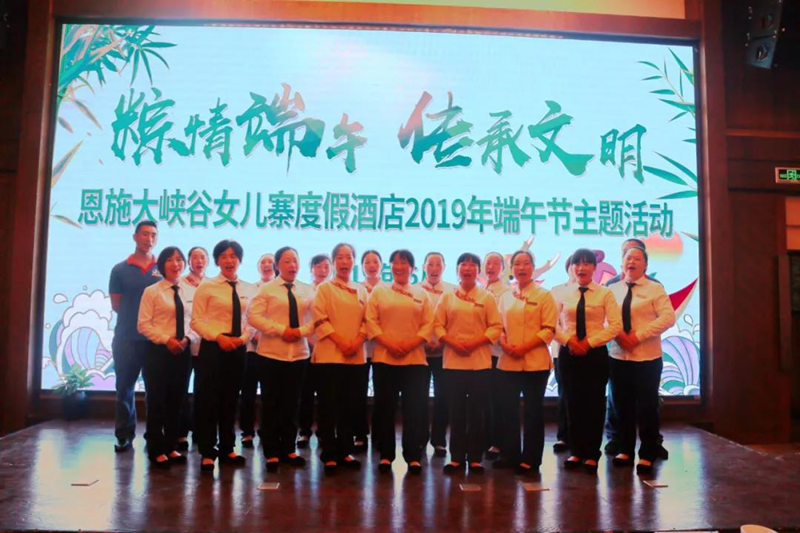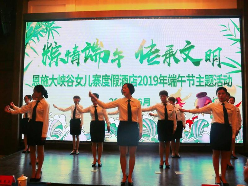 6月6日,恩施大峡谷女儿寨度假酒店开展了“粽情端午,传承文明”端午节主题活动。活动分为粽叶飘香迎端午、笔墨浓情画端午、咏唱经典颂端午、廉政倡议护端午、见贤思齐亮端午等5个环节。通过手工体验、经典诵读、书法创作、文化娱乐、知识抢答等形式,充分展示了端午文化,激发了爱国情感,彰显了道德关怀,培育了家国情怀。