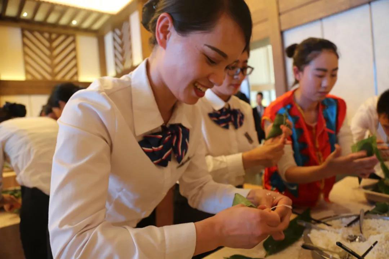 来自公司各部门一线员工展现了包粽子绝活,表演了歌曲、舞蹈、诗词朗诵、茶艺等多种形式的才艺,表达了他们对传统文化的热爱和敬仰。