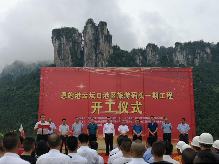6月18日,恩施港云坛口港区旅游码头项目正式开工。恩施州、市行业主管部门,沙地乡政府,恩旅集团及施工、监理单位有关负责人等参加开工仪式。