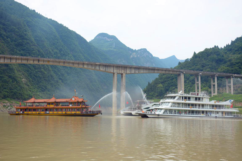 此次演练主要模拟游客在游船客舱内吸烟引起座椅着火,安全员立即将火情报告船长,船长指挥现场灭火,并报告演习总指挥,请求启动应急预案。各支援船只在总指挥的统一调度下迅速达到指定位置开展增援。