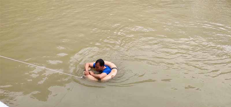 模拟人员落水现场,救援船只及时展开搜救,成功救起落水游客。