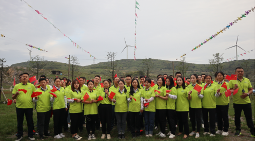 活动最后,全体人员一起合唱《我和我的祖国》,嘹亮的歌声伴着转动的风车响彻傍晚的齐岳山,手中的小红旗见证龙凤员工的魅力风采与广阔齐岳山的深度融合。员工既愉悦了身心也增加了团队凝聚力,达到了本次活动的预期目的。