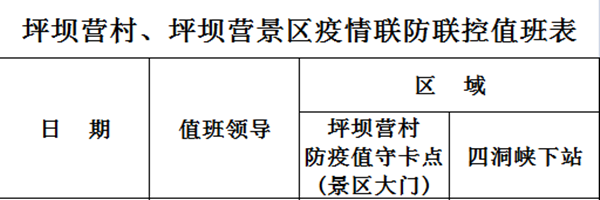 为做好坪坝营景区疫情防控工作,坪坝营公司第一时间成立疫情防控领导小组。并与坪坝营村村委会整合优化配置,形成“党员+景区员工+志愿者”的联防联控队伍,推动了疫情防控工作人力物力资源的最大节约化和高效化。