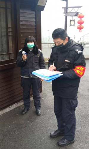 值守期间,周军的工作主要是对其他值守员工在岗亭处进行体温测量、登记,一旦发现异常,立即按预案采取紧急措施并上报。他每天还要对公司全范围巡逻,确实无其他人员进入和公司财产安全。公司总面积25000多平米,将10余栋客房、商业区、办公楼和生活区的每个角落走一遍,最少要2个多小时,而他每天要走2遍。