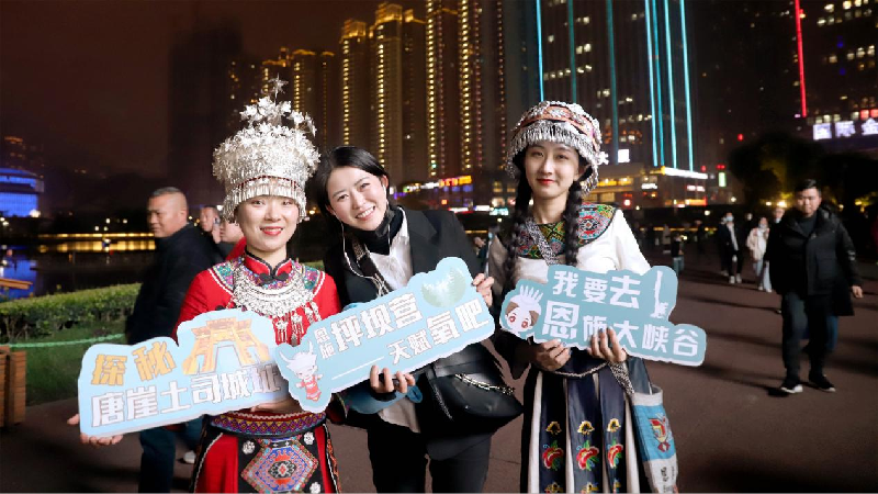 4月9日-10日,恩施旅游集团携手旗下5个景区在贵阳繁华地带花果园广场、城市地标甲秀楼开展城市快闪活动。恩施旅游集团旗下的恩施大峡谷、恩施大清江、恩施坪坝营、唐崖河黄金洞、唐崖土司遗址景区组团“闪”亮爽城,向贵阳市民发出观光赏景诚挚邀约。