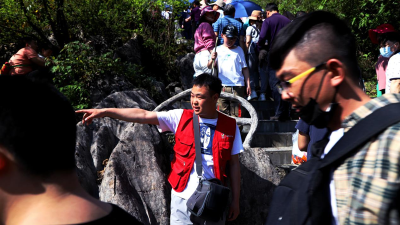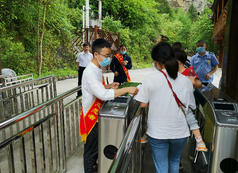 △恩施大峡谷景区志愿者引导游客有序参观游览