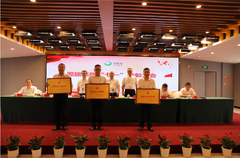 表彰大会在激昂的国歌声中拉开帷幕。周永彪同志带领新党员入党宣誓、老党员重温入党誓词,恩旅集团领导班子为14名过“政治生日”的党员代表赠送贺卡。党委委员、纪委书记邓江权宣读恩旅集团“两优一先”表彰决定,对先进基层党组织、优秀共产党员和优秀党务工作者进行了表彰。3名党员先进代表作典型发言。