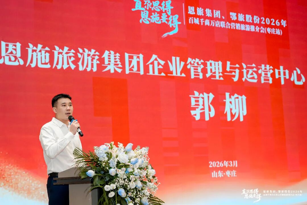 恩旅集团企业管理与运营中心副总经理郭柳致辞表示,本次推介会,既是恩施旅游深耕山东市场的重要一步,更是以文旅为媒,拉近两地距离、增进情感交流的暖心之举。希望通过本次推介会,让更多枣庄朋友认识恩施、了解恩施、走进恩施,也期待与各位文旅同仁携手共建鄂鲁文旅合作的坚实桥梁,让恩施的山水之美、民族之韵、硒养之福,走进千家万户。