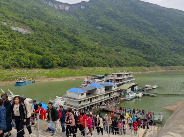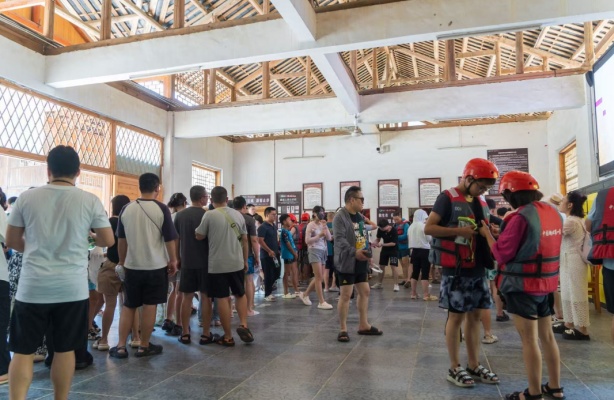 清晨的大清江景区,游船码头已迎来首批游客。景区实施全员上岗制,工作人员各司其职:检票口采用智能核验设备,确保游客快速有序入园;服务点工作人员耐心解答各类咨询,从最佳游览路线到特色景点介绍,事无巨细。