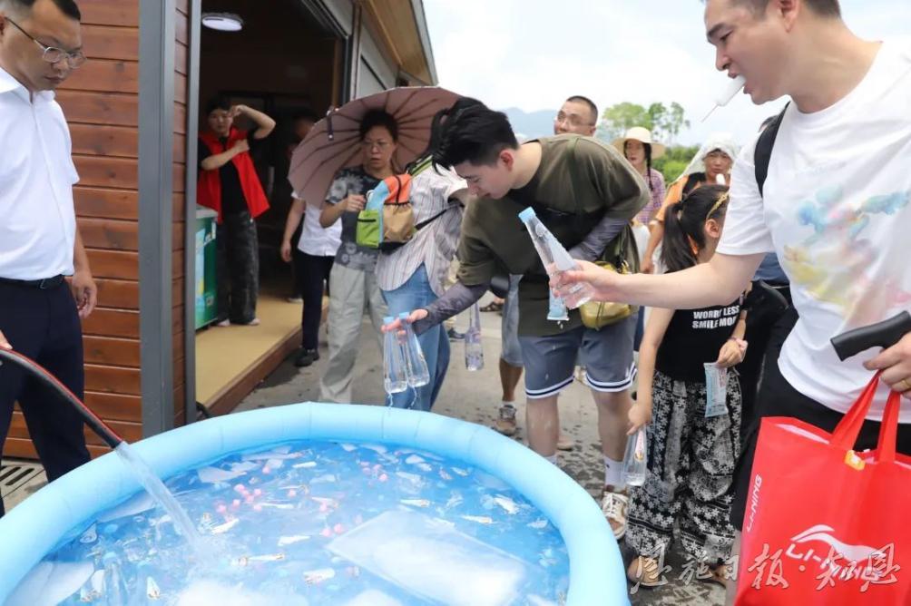 炎炎夏日,恩施大峡谷景区推出暖心"冰桶计划",为返程游客免费提供冰镇矿泉水和老冰棍,获得游客一致好评。