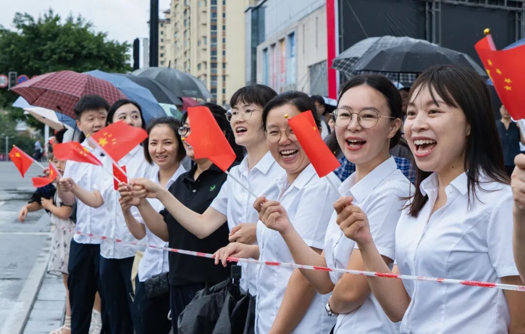 9月13日,2025中国公路自行车公开赛(湖北恩施站)隆重开赛。细雨淅沥中,恩旅集团组织百余名员工组成啦啦队,坚守于赛道旁恩旅大厦加油点,以热烈有序的方式为选手助威,成为雨中一道温暖而亮眼的风景。