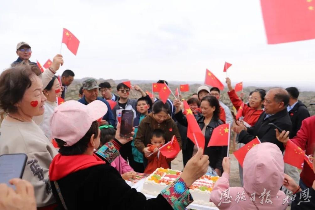 登山途中,景区设置的多个"与国旗同框"打卡点也深受游客喜爱,大家纷纷在此留下与国旗的珍贵合影。