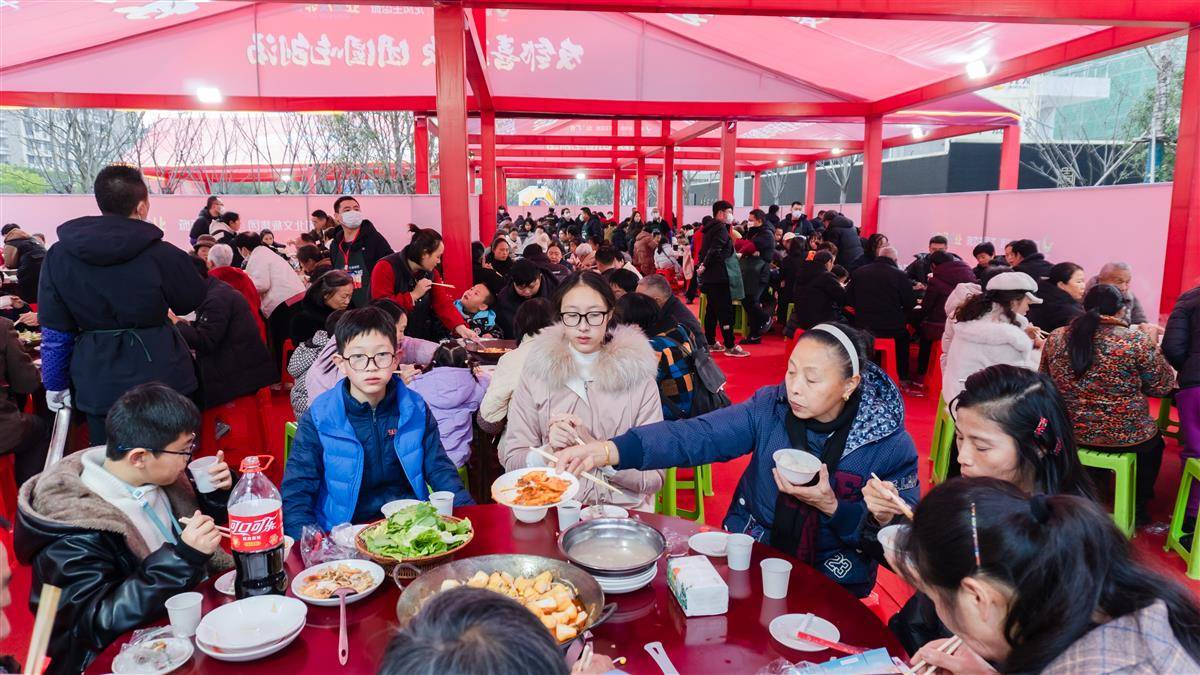 活动现场另一大亮点是延续了3年的传统——宰杀20头猪,宴请全体业主吃刨汤。香气四溢中,业主们围坐一起,吃得暖心又满足,欢声笑语随着热气升腾。席间,还有擅长书法的业主为邻里挥毫送福,书写春联,浓浓的年味与人情味弥漫在整个社区。
