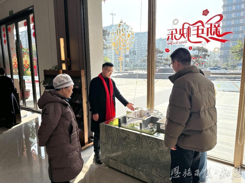在恩施城区,龙凤生态城售楼部昼夜通明,销售团队始终在岗,用专业讲解迎接每一组看房客户;物业团队日夜守护,用细致服务保障社区安宁。从山水之间到万家灯火,不同的战场,同样的坚守——恩旅人用责任与奉献,让这个春节更有温度。