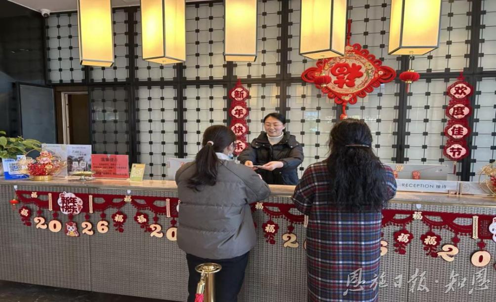 为了让旅途中的每一刻都有温度,酒店精心策划系列暖心活动:大堂里,工作人员为早起的客人递上一杯热茶;客房内,服务员细心整理每一间归巢;后厨中,厨师们忙碌烹制着充满年味的家乡菜。这些用心的服务,收获了宾客们的笑容与点赞,也让恩旅酒管成为游客口中“旅途中最温暖的驿站”。
