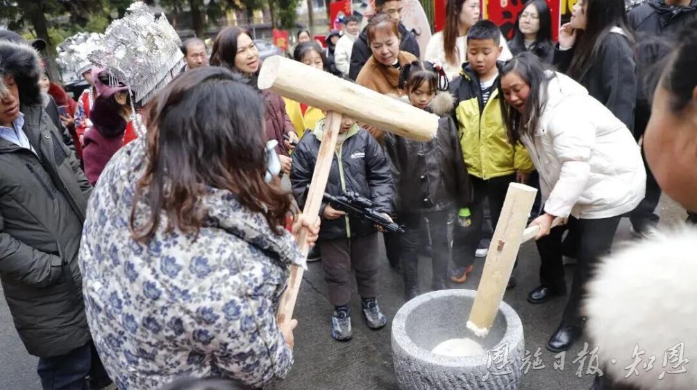 咸丰坪坝营以“骏马踏春启新程 非遗闹春醉林海”为主题,捣糍粑、学做土家豆皮、剪骏马窗花等非遗体验项目前人头攒动,游客们在互动中感受原生态土家族年味。