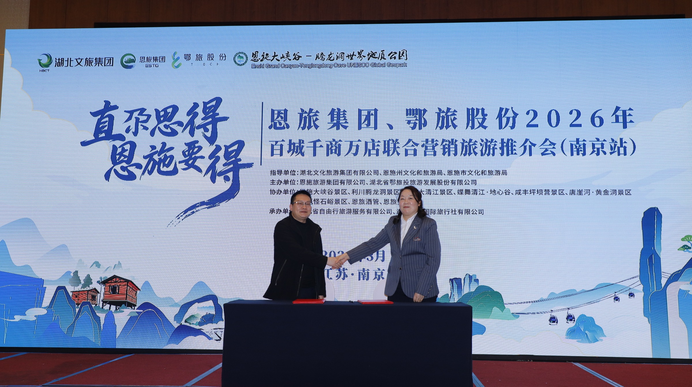 3月9日,恩旅集团、鄂旅股份2026全国“百城千商万店”联合营销推介会首战在南京圆满落幕。
