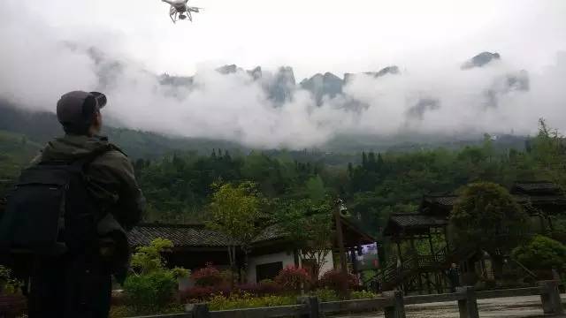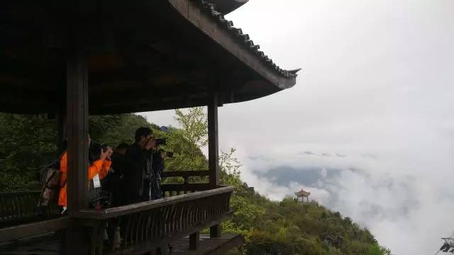 以云雾飘渺的绝壁为背景合个影