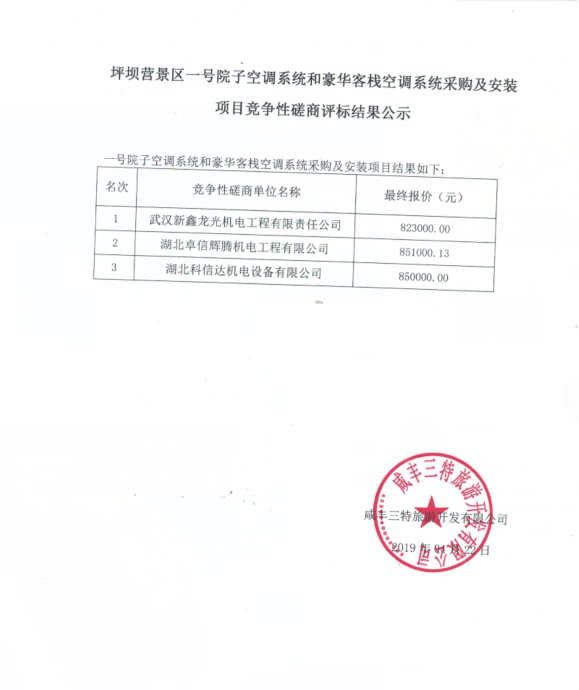 坪坝营景区一号院子空调系统和豪华客栈空调系统采购及安装项目评标结果公示