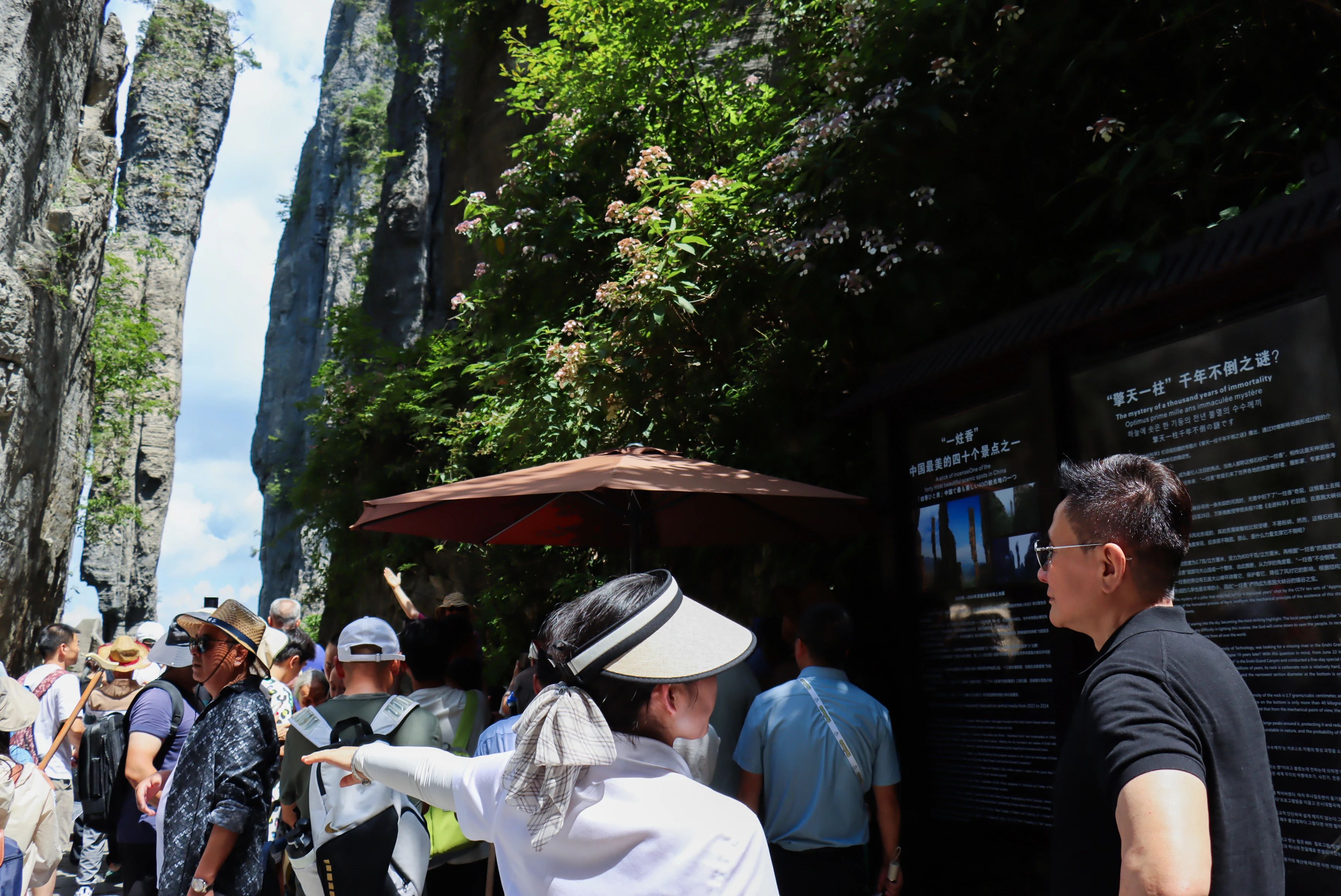 上午,考察团一行抵达七星寨核心景观“一炷香”。这座高达150米的喀斯特石柱拔地而起,底部6米的根基在亿万年风雨中愈显沉稳,而最窄处仅4米的纤细腰身更显造化神奇,让人不禁感叹自然之力的鬼斧神工。