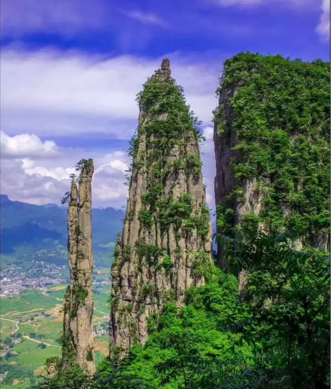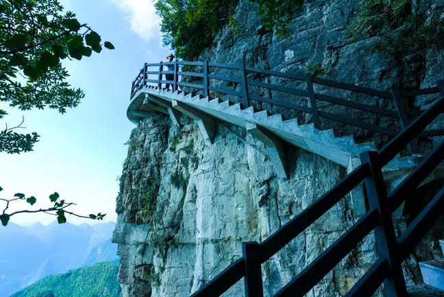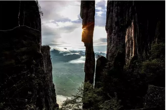 感受吧!那山。星罗棋布的山峰,奇异怪状的山形,令人瞠目结舌之间不得不叹服大自然的鬼斧神工;连绵起伏的山脉,绿荫成片一面是优柔的美,峰丛林立的绝壁,陡峭险峻一面是雄壮的美;两种不同风格的美融为一体,这就是大自然的天造地势!踱步于环山修建的层层台阶,登至山的顶端“一览众山小”的景象体现地淋漓尽致,此情此景着实令人震憾!