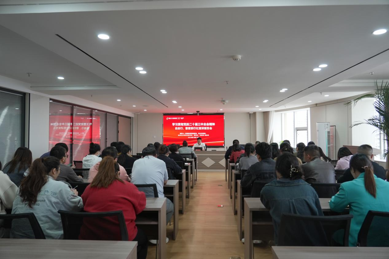 10月15日,恩旅集团宣讲团成员、党委委员、执行总经理樊后涛到湖北自由行公司、恩旅散客旅行社集中宣讲党的二十届三中全会精神,自由行公司、散客旅行社全体干部职工50余人参加宣讲会。